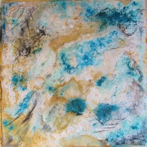 Reaktion II, Rost, Kupfer und Acryl auf Leinwand, 40×40